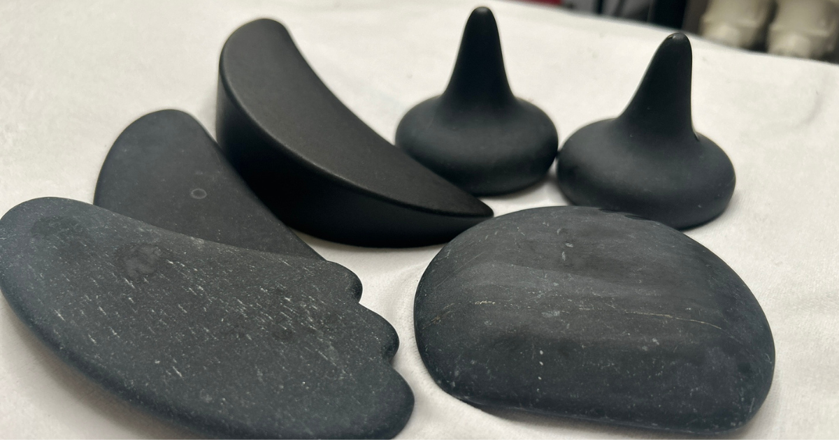 サロンで使用するバザルトストーンは、玄武岩を体の各部位に合わせた特殊な形状に加工したもの。